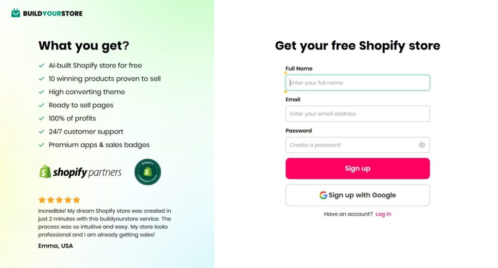 Start your journey to success now; build your Shopify store in five minutes with BuildYourStore!